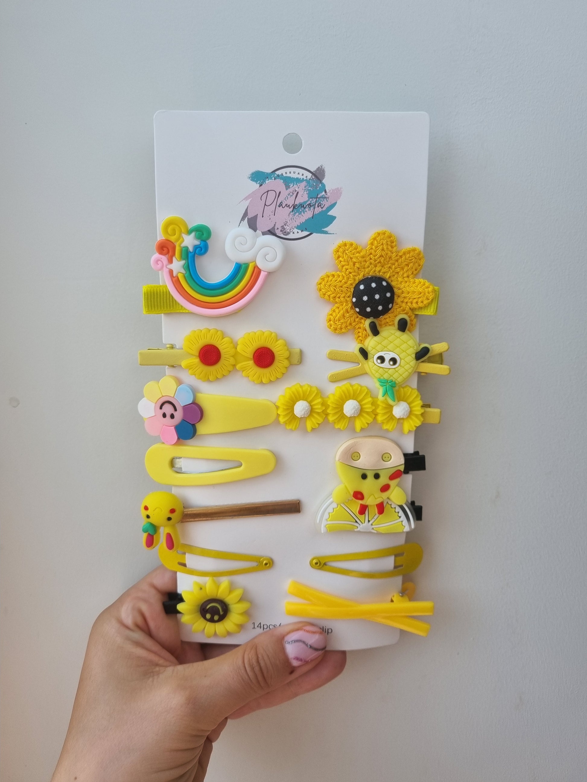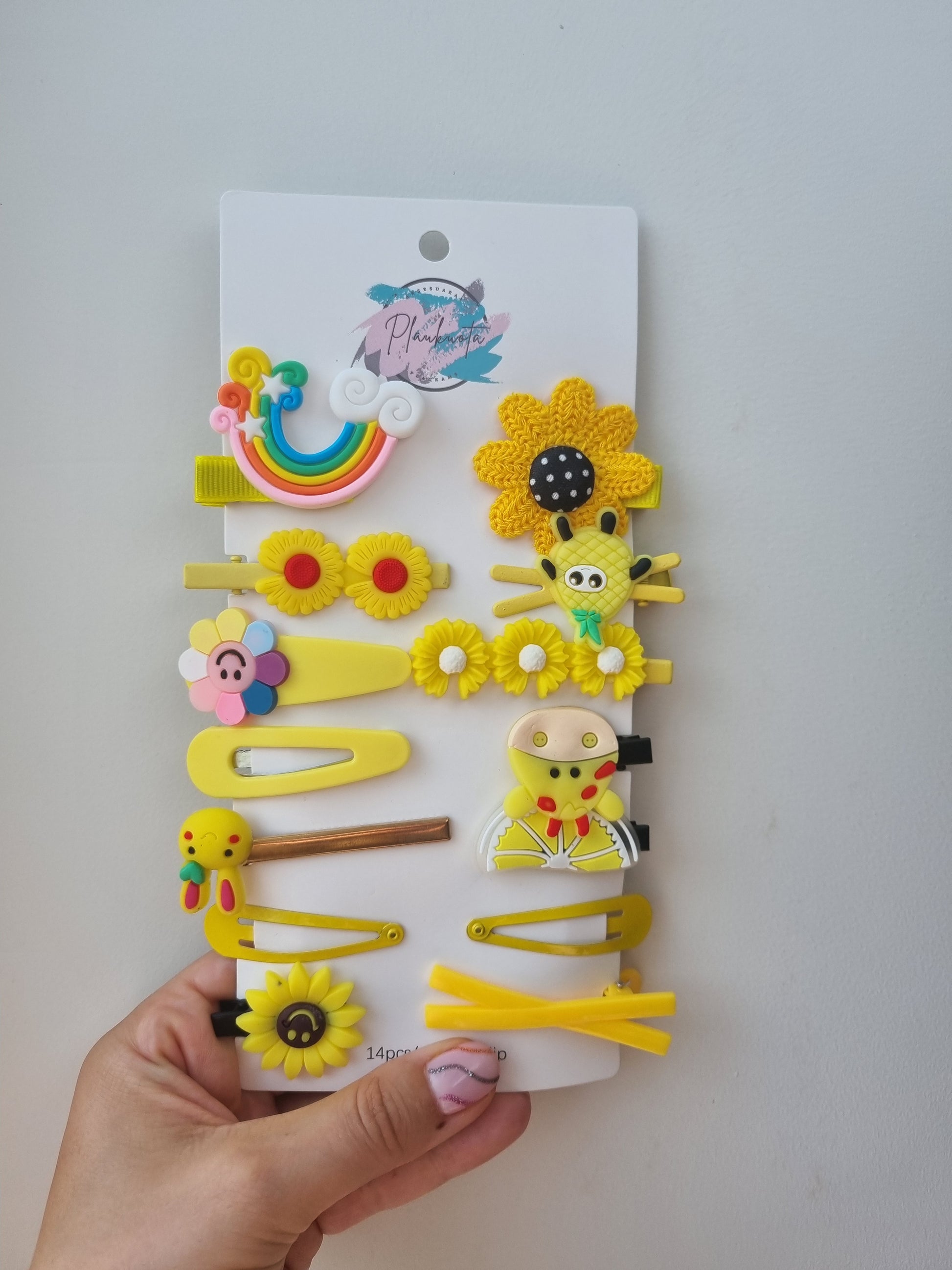 Geltonų žaismingų segtukų vaikams rinkinys